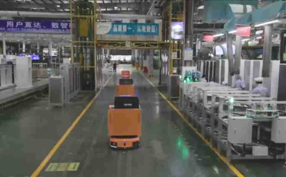 为车载冰箱物流配送打造的智能解决方案,,,包含产中物流通过潜伏举升AMR搬运至线边,,产后成品物流智能仓储,,,流程包含产中物流智能齐套入库,,,,线边安灯叫料AMR智能配送至线边,,,成品入库、、出库,,,,通过无人堆高车机器人,,,,智能仓储管理替代人工作业管理,,,实现更高存储、、、、更高效率、、、、更具柔性化的解决方案。。