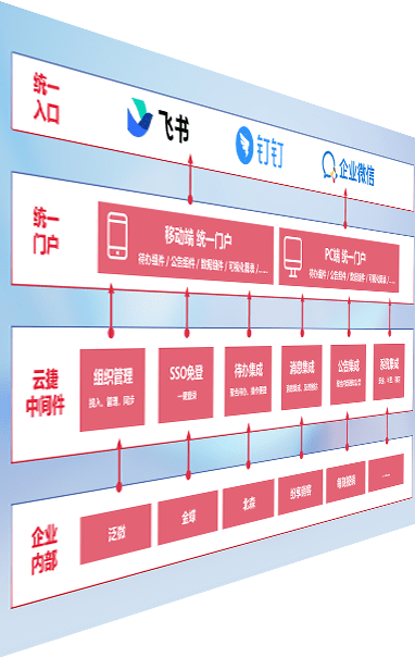 对协作平台提供支持服务,,,支持企业应用与协作平台对接,,,包含组织同步、、、、消息集成、、、待办集成等。。支持目前主流的协作平台:钉钉、、企微和飞书。。